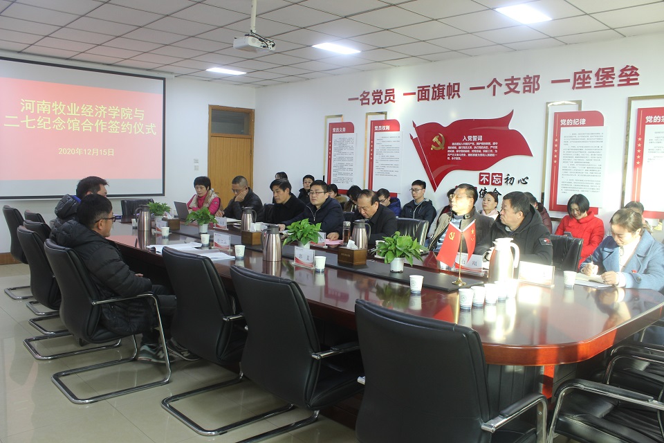 最后在热烈的掌声中,双方代表张卫宪副校长、张江山馆长分别代表学校和二七纪念馆共同签订了合作协议并合影留念。