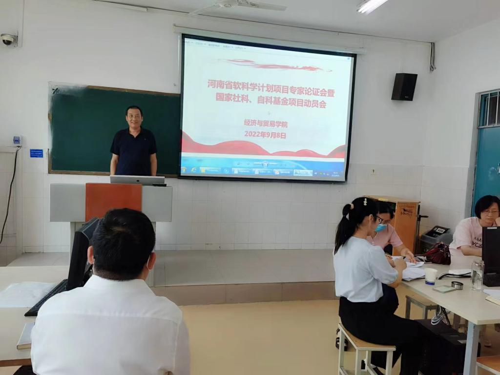 会上,张教授首先以我院吴博士的申报书为例,针对河南省软科学计划项目在选题、立项依据、研究意义、标志性成果、相关领域研究水平和趋势、研究内容、预期成果形式和研究团队等方面如何提高申报质量进行了详细讲解;接着,张教授给大家分享了自己的项目申报、研究及多次作为项目评审专家的经验并同与会教师进行了沟通交流;最后,李院长对张教授的指导进行总结并再次表示感谢,针对2023年度国家社科、自科基金项目申报从学校发展、学院发展、教师个人成长三个方面做了动员讲话。李院长在讲话中指出,国家基金项目申报是学校创新能力和学科建设的重要抓手,是助推教师个人发展的重要载体,学院非常重视,竭诚为大家做好服务工作,进一步激发科研者的工作热情和创新潜能,营造良好科研氛围。
