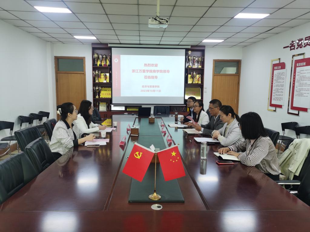 10月11日上午,浙江万里学院商学院院长助理孙彤、研究生党支部书记艾静一行2人来我院调研考察,旨在进一步加深两院之间的交流与合作,探索更先进的人才培养模式。交流座谈会在英才校区教学楼327会议室进行,院党委副书记贾艳艳,副院长杜玲、孙晓林及相关科级干部参加了会议。