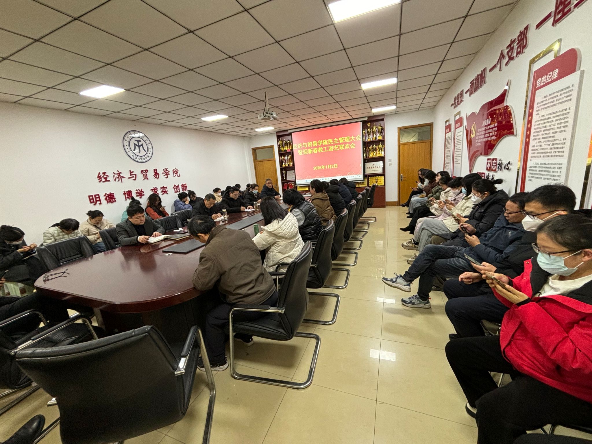 为全面总结工作经验,谋划新一年工作举措,充分发挥民主管理大会的职能作用,让教职工积极参与学院民主管理,推动我院民主管理工作提质增效,1月2日下午,我院在英才校区教学办办公楼327会议室召开2024年度民主管理大会,共话2024年事业进展,共商2025年发展大计。学院全体教职工参加会议,大会由学院党委书记张松刚主持。