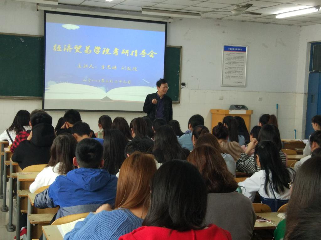 为使同学们更深入地了解考研中的各种问题,帮助广大学子确立正确的奋斗目标,及时解决考研中遇到的各种困难,端正同学们的考研态度,更好地摆正自己的人生规划。经贸学院李光谱副教授于3月29日下午三点在W106举行了考研动员讲座。