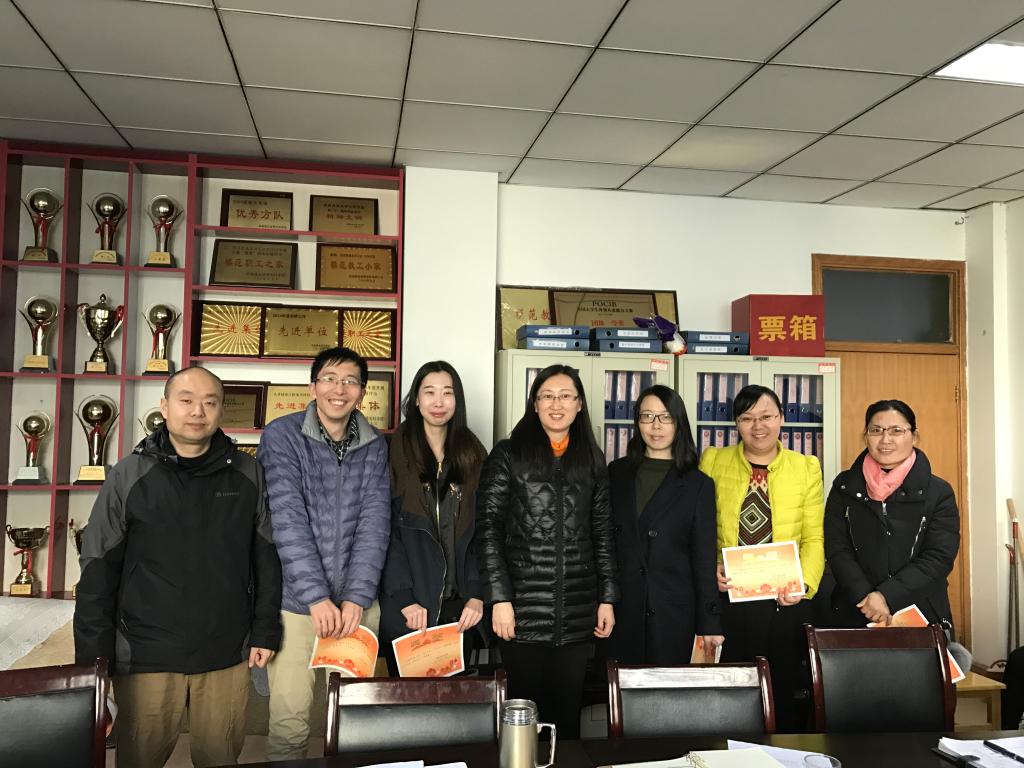 会议开始,学院教学副院长孙晓林、科研副院长高敏、副书记田景丽三位领导,分别客观全面的总结了过去一年各归口工作的开展情况,并对下年度的工作进行了安排布置,提出了明确要求和殷切希望。随后,学院党总支书记牛建绥对我院第一届教工趣味运动会做了总结讲话,并宣读了运动会比赛结果。学院院长李光宣读了《关于表彰2016年度教学标兵、科研标兵、管理服务标兵的决定》,分别表彰了在2016年度积极承担教学任务,教学效果优秀;科研成绩突出;在管理服务岗位业绩突出的教师。这时,授奖人员成为全场的关注焦点,他们陆续登上光荣的领奖台,从领导手中接过荣誉证书。他们为学院教学、科研、管理服务工作,为学院的稳步发展做出了积极的贡献,付出了勤劳的汗水,成为我们大家学习的楷模。学院全体教师用热烈的掌声向获奖教师表示了祝贺。学院领导与受表彰的先进个人合影留念。学院院长李光在表彰结束后提出殷切希望,希望全院教师以各位受表彰的同志为榜样,在假期间积极做好下学期教学、科研的准备工作,明确方向,积极储备,并预祝大家过一个安全、祥和、充实的新年。