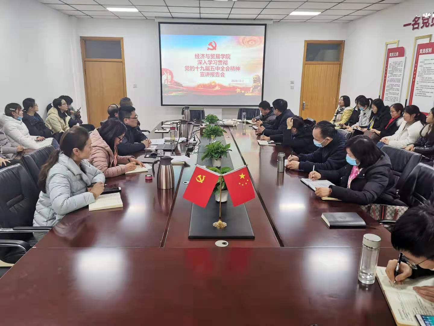 为落实校党委关于组织开展党的十九届五中全会精神宣讲活动的有关要求,推进全院师生深入学习贯彻全会精神,2020年12月3日下午,学校“学习贯彻党的十九届五中全会精神宣讲团”成员、院党委书记张松刚在英才校区教学办公楼327会议室面向全院教师集中宣讲党的十九届五中全会精神。
