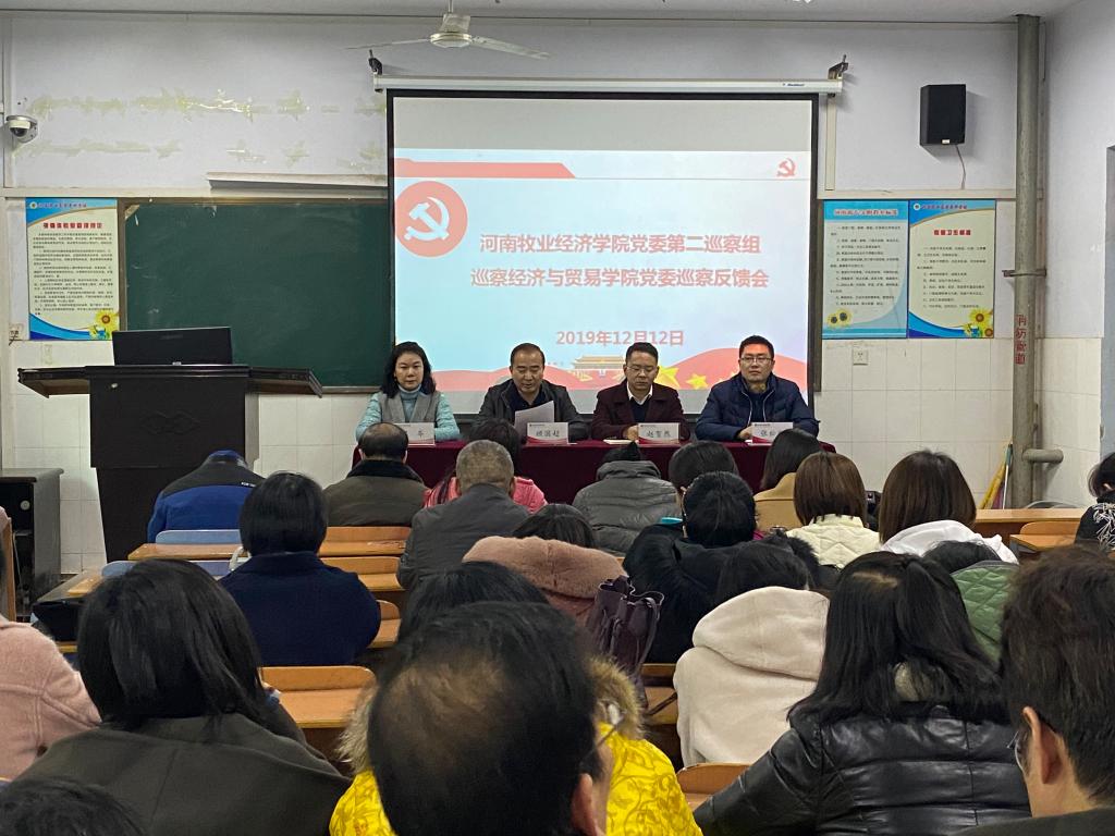 会上巡察组组长顾国超宣读了williamhill中国党委第二巡察组巡察经贸学院党委的反馈意见。介绍了巡察组巡察经贸学院期间工作开展情况,肯定了学院领导班子坚持以习近平新时代中国特色社会主义思想为指导,围绕学校中心工作,在不断增强管党治党责任,不断推进党建工作、教科研工作和学生教育管理工作中取得的成绩,同时围绕政治建设统领作用发挥不够、思想建设和意识形态工作不够扎实、党的组织建设和政治生活存在薄弱环节、管党治党不严等七个方面反馈了巡察意见,并针对存在的问题和不足向院党委提出了整改意见和建议,希望学院党委在强化政治引领,全面提升党建工作质量;强化组织引领,进一步加强基层组织建设;强化责任担当,助推学院发展等方面抓好整改落实。