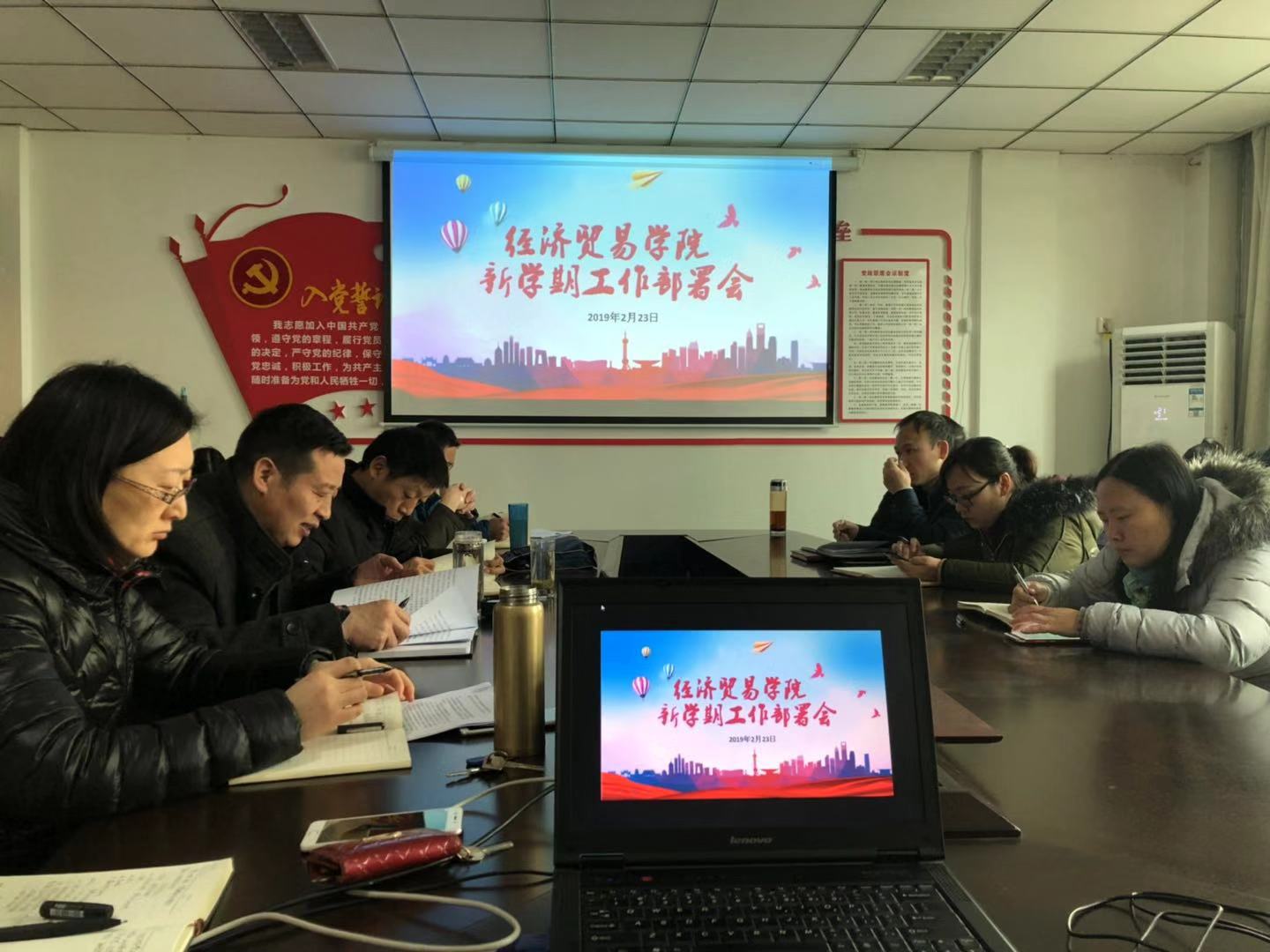 为贯彻落实校党委的工作部署,保障新学期各项工作的稳步推进,经济贸易学院于2月23日上午午在英才校区教学办公楼216会议室召开全体教工大会,对各项工作进行了全面部署。会议由学院党总支书记牛建绥主持。