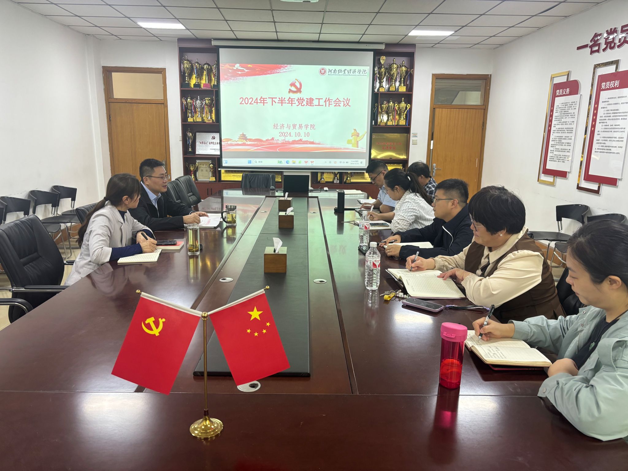 10月10日下午,我院党委在英才校区教学办公楼327会议室召开2024年下半年党建工作推进会暨党支部书记培训会议。院党委书记张松刚、副书记贾艳艳、党政办主任康洋及各党支部书记参加了会议。会议由书记张松刚主持。