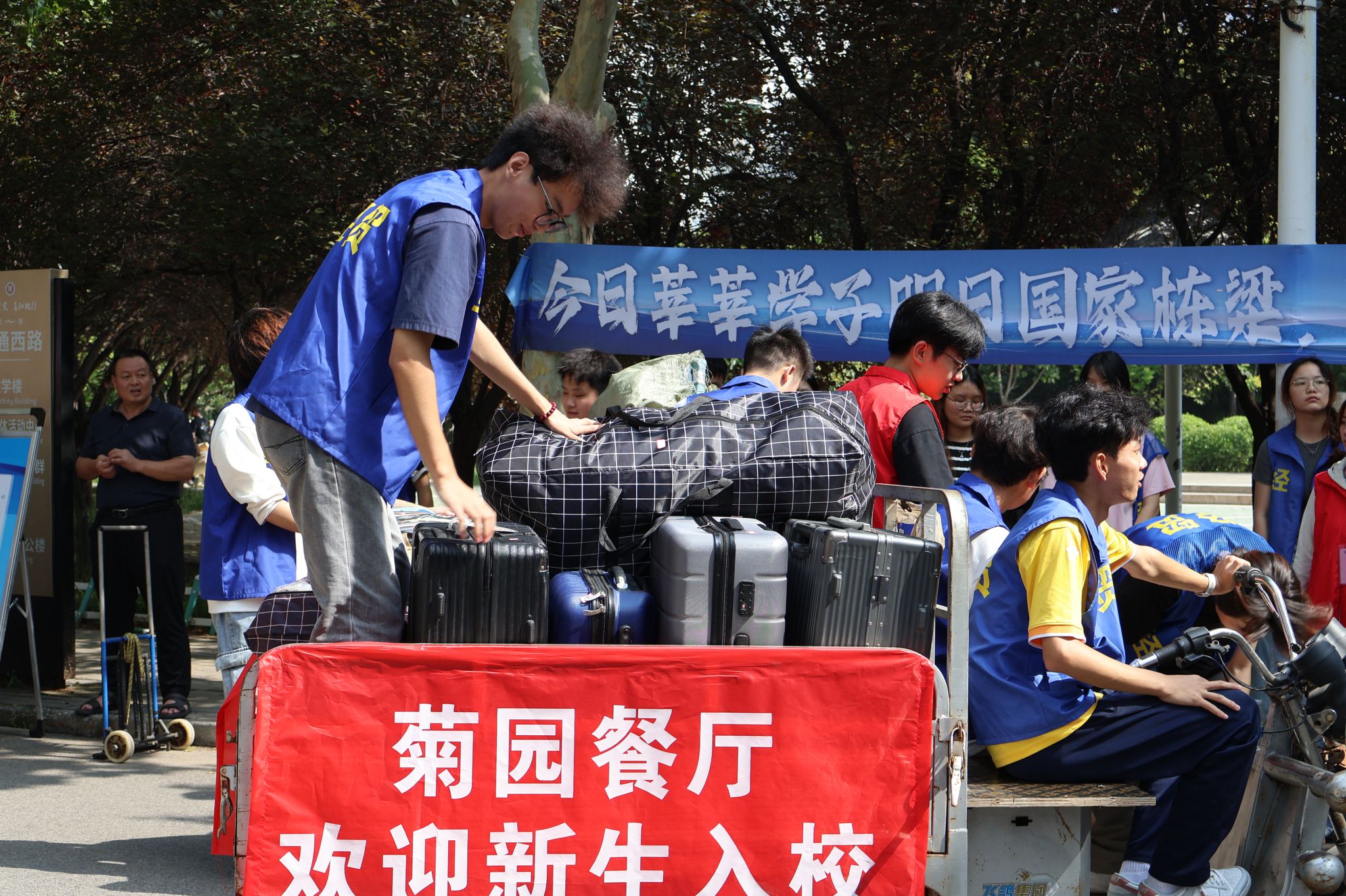 我院志愿者在学校门口热情的引导新生同学到我院新生报到处注册登记,志愿者们接过新同学手中的行李,将他们送到宿舍楼,现场代班们和工作人员耐心解答新生及家长的疑问,直至新同学们全部完成报到注册,整个报到环境和流程清晰流畅,赢得了家长们的一致称赞。9月13日下午,我院新生注册报到完毕,2025级新生入学迎新活动圆满落下帷幕,愿2025级新生在此执笔绘梦,共赴山海!