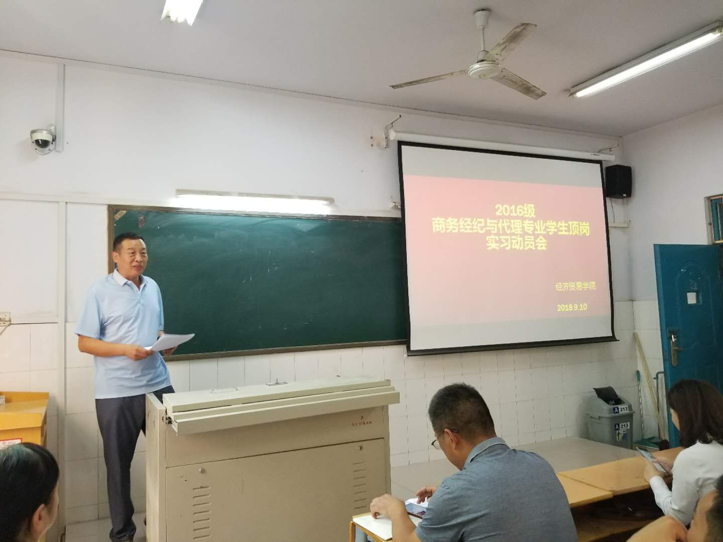 为了促进2016级商务经纪与代理专业学生顶岗实习工作的顺利开展,强化实习管理,确保实习质量,2018年9月10日下午四点,经济贸易学院在A213召开顶岗实习动员大会。院领导班子成员、顶岗实习指导教师、辅导员和27名2016级商代专业同学参加了此次大会,校企合作单位代表出席会议。大会由经贸学院党总支书记牛建绥主持。