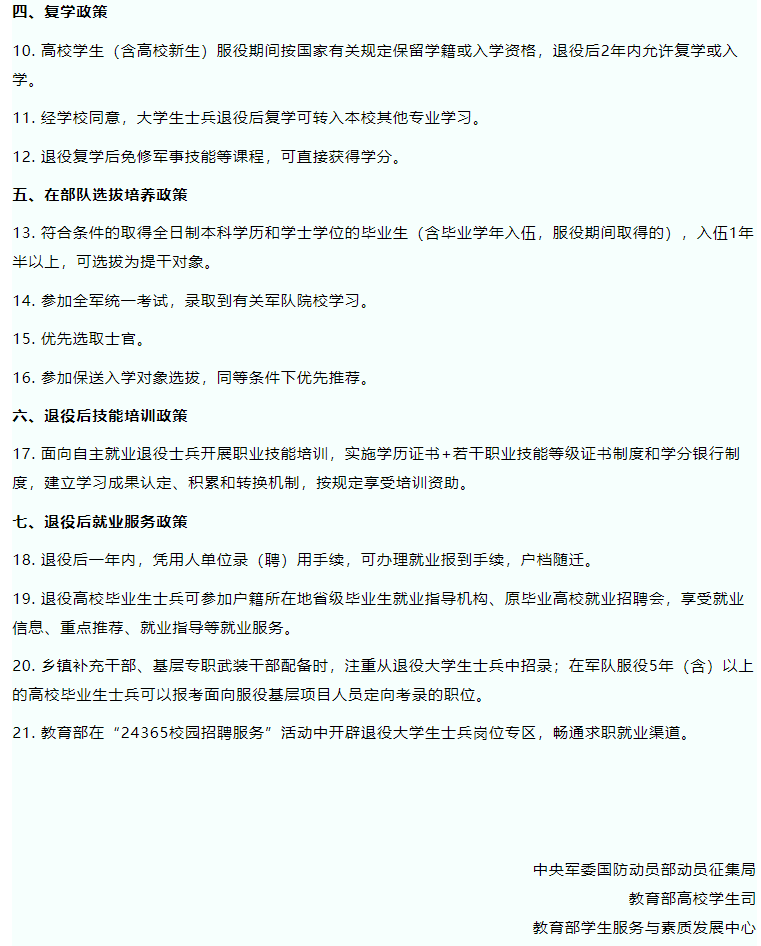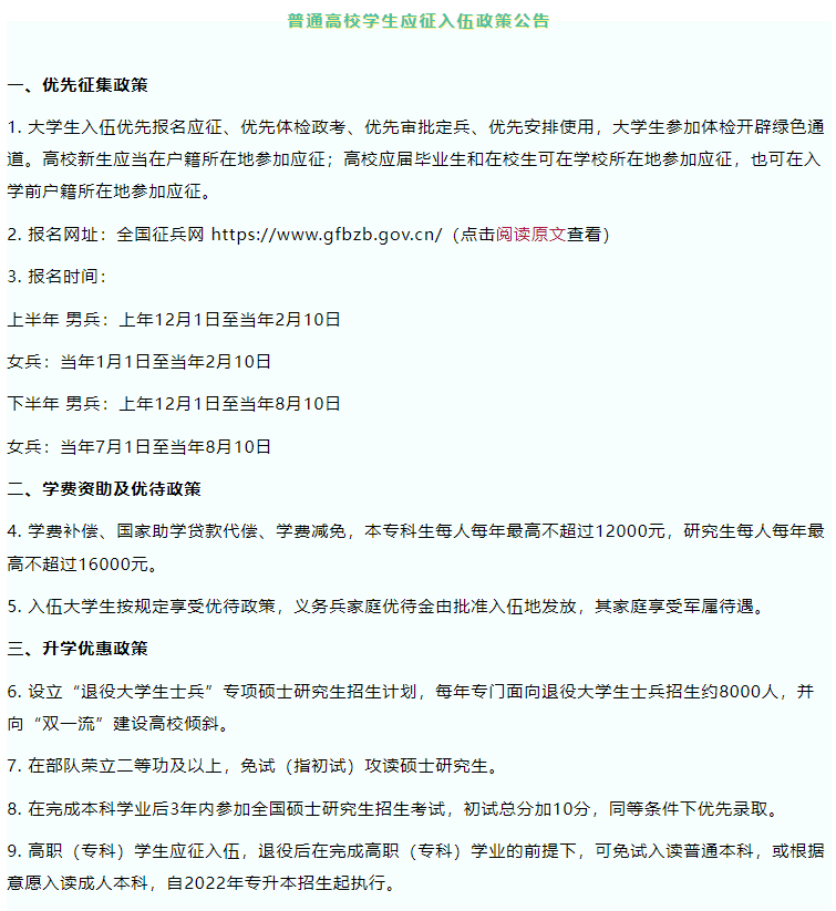 普通高校学生应征入伍政策公告