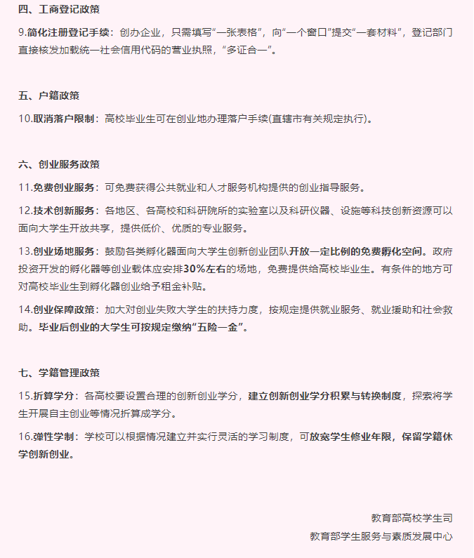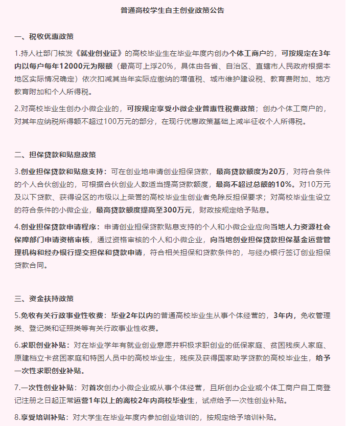 普通高校学生自主创业政策公告